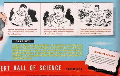 Holy fuck this is a splendid thing. From the packaging, to the Dagwood Splits the Atom comic, to a government-promoted pamphlet called “Prospecting for Uranium” to the fact that there are multiple forms of uranium included, it’s just… I don’t… GUH. There’s a geiger counter, an electroscope, a miniature cloud chamber, a spinthariscope… I don’t even.