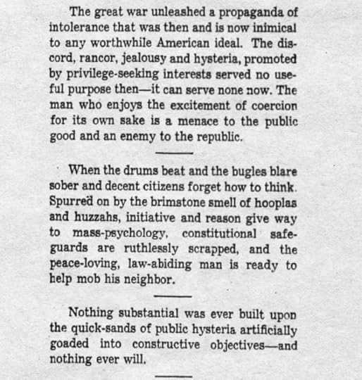 “And then [Vimes] realized why he was thinking like this. It was because he wanted there to be conspirators. It was much better to imagine men in some smoky room somewhere, made mad and cynical by privilege and power, plotting over the brandy. You had to cling to this sort of image, because if you didn’t then you might have to face the fact that bad things happened because ordinary people, the kind who brushed the dog and told their children bedtime stories, were capable of then going o...