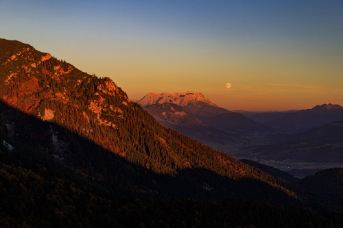 Moonrise at sunset - Adlerweg, Tirol, Austria, October 2022