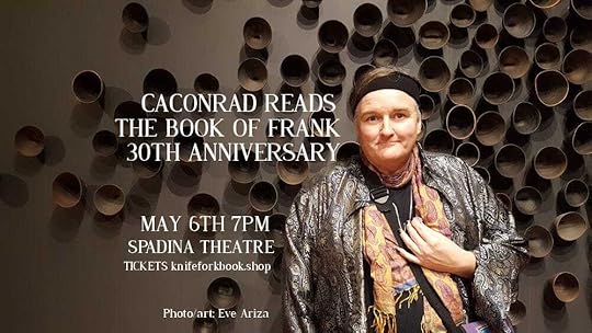 CACONRAD READS THE BOOK OF FRANK 30Th ANNIVERSARY CELEBRATION MAY 6 7PM SPADINA THEATRE ADV TKTS $20: knife | fork | book