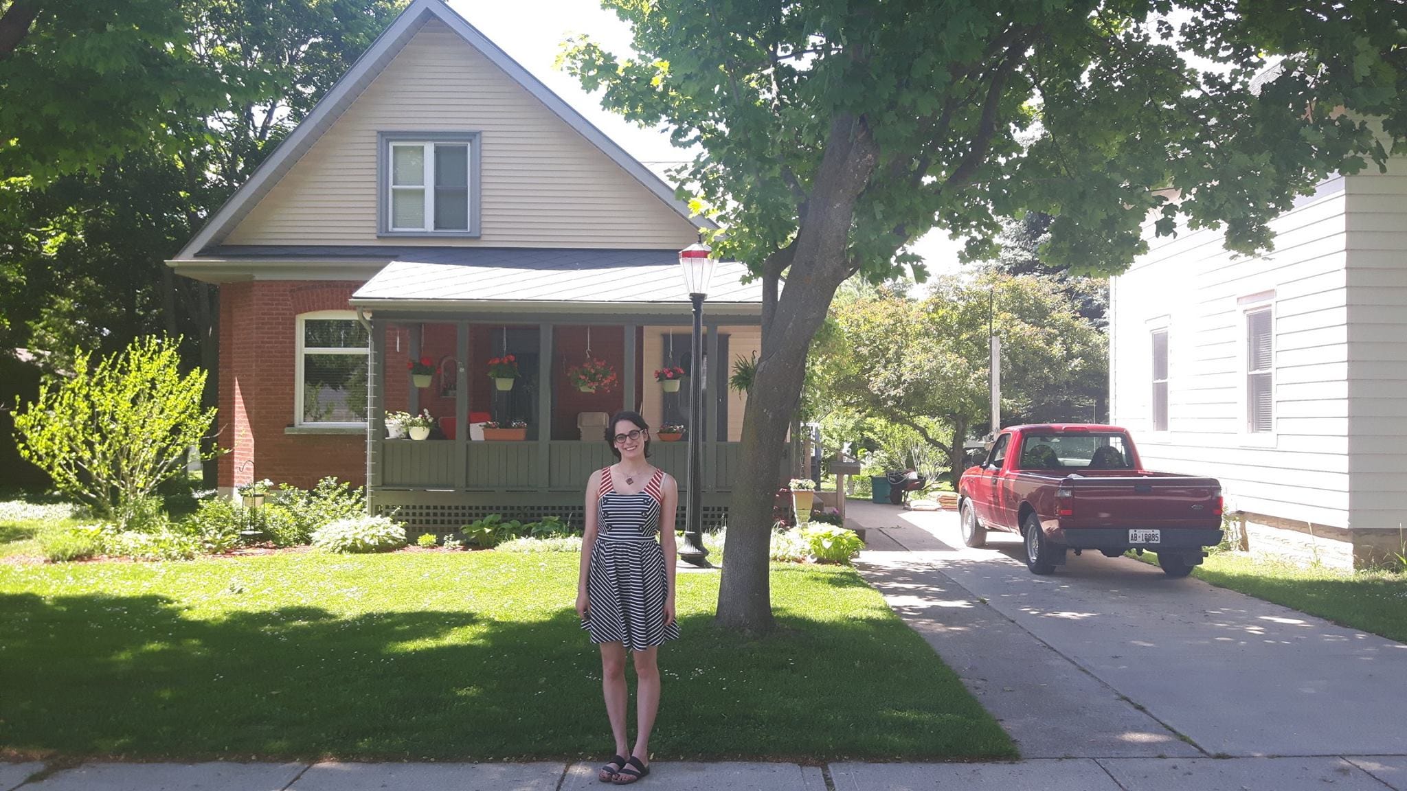 Following the pamphlet’s directions, we visited the public school Munro attended and the radio station where she first read her stories on-air as a teen, the hospital where she was born, and a charming brick bungalow where she once lived part-time. R kept wanting to take pictures of me and I posed, feeling cute in my sailor dress and wide straw hat. I would have liked to walk to the Laidlaw homestead in Lower Town, where Munro grew up, but I feared testing his good-natured patience. We agreed to visit it instead on our way back to Toronto the following day.