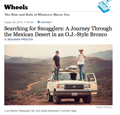 Yes, the Bronco made it into the New York Times. What a day. I love this review that Ben Preston did of our documentary and adventure. "The ride" was so important while filming Baja Smugglers. It seems fitting that he'd tell the story of the trip through the lens of the Bronco. And sweet Jesus, what a title!