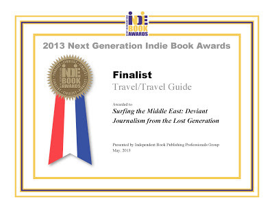 Yep. We're winning awards again. Surfing the Middle East has been recognized as a finalist in the travel category at the Indie Book Awards. Many thanks to all who have followed this project from beginning to end. Even more thanks to those who have read and written me saying how much you enjoyed the adventure. Remember, writers write for the readers (you.). Couldn't have done it without you.