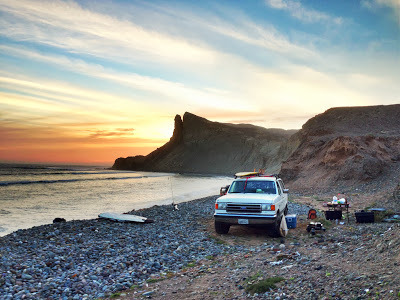 Central Baja is known as a lawless desert that produces much of the marijuana that gets smuggled into the United States by panga. It's also known for its beauty. Here we're camped out, getting ready for the next day... where we'd go into the fish camps to talk to people about drug smuggling. Photo by Luis Velazquez.