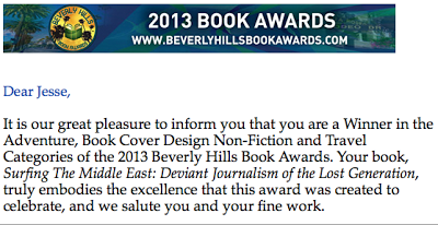 It is with a proud heart that I can rely this information to you: Surfing the Middle East: Deviant Journalism from the Lost Generation has won 3 categories in the Beverley Hills Book Awards! Adventure, Travel, Non-fiction Cover Design.
