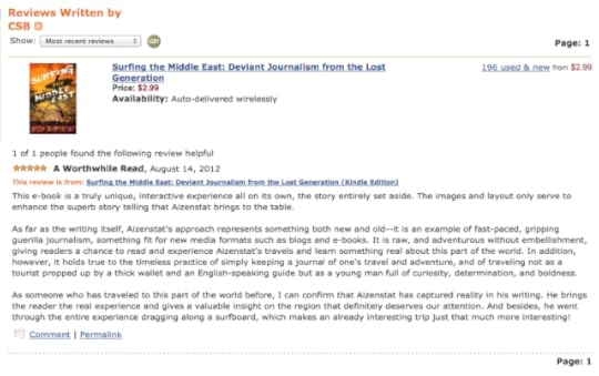 As you've been seeing, Surfing the Middle East has been getting a flurry of big media attention. But it's not out of the gate yet. I need your help reviewing, liking, and choosing which comment is the most helpful on my Amazon page. Then together we can watch Surfing the Middle East climb into the Amazon Top 100!