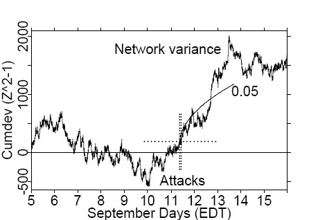 September 11 was in the middle of the graph, and the spike just sits there all by itself, mocking us in our ignorance of what it means. Dr. Dean Radin