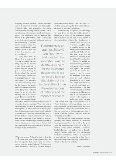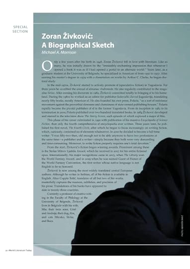 The special section on Zoran Zivkovic's fiction in "World Literature Today"