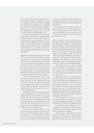 The fact that I was writing fiction quite astonished me, but what amazed me even more was my lack of any rational control over it. The process was very different from composing my nonfiction texts, when I knew precisely what I wanted to do and how to do it. When I wrote fiction, sentences kept flowing, apparently out of nowhere, as if someone was inaudibly dictating them to me.