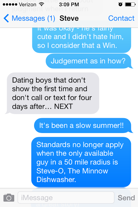He thought that was hilarious. Sometimes it drives me crazy that the more mean I am to guys, the more they like me.