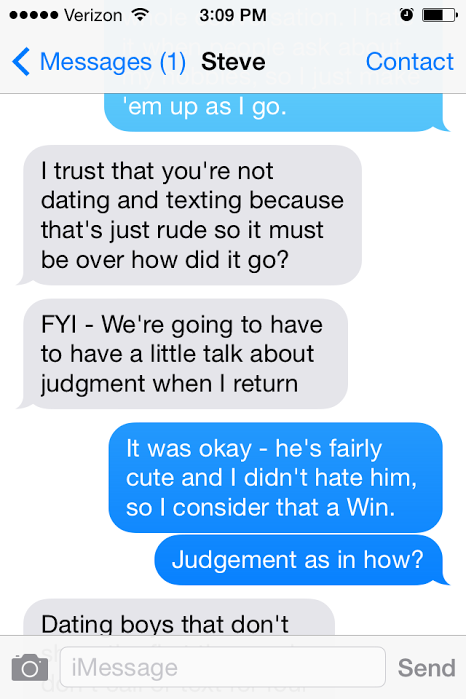 So I kind of gave it to him, and then I had to remind myself that I hadn't really wanted to go on a date with him in the first place so I let up a bit, and then he texted me some random stuff about Cat Stevens and Peace Train, and then somehow we're back to this: