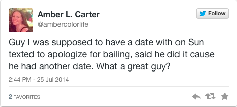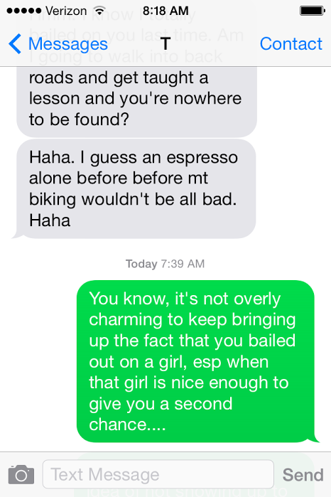 But here's the thing: There's a part of me that doesn't want to hold the whole "I ditched you and then waited four days to apologize" thing against him, because online dating stuff is weird and I've learned to really not take anything personally until the person has actually met me. However, like I also talked about before, the most important thing I'm looking for is great character...and people with great character don't typically blow off someone they had made plans with and then wait a week to apologize for it.