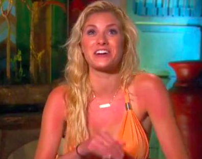 (Un)Luckily for us, Marcus and Lacy are feeling True Love. Apparently brains isn't everything, ladies - men will still fall in love with you if you jump into the ocean with just about anybody, play two guys against each other, and continue to mispronounce everything. Marcus tells Lacy that he loves her and she's like, "That makes my heart skip a beat." Can you stop it with the cliches already? First we had to hear you tell us that "You're never fully dressed without a smile" on The Bachelor, and now this bullshit. Also, I am actually totally jealous and dying with envy that they get to sit on a beach and make out in front of a campfire while I'm sitting on a couch, wondering when, exactly, my vagina will just decide to close down shop and lock down the shutters due to business having dried up in the ghost town formerly known as Sex City.