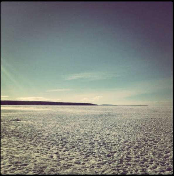 The temp was around 14 degrees, but we still bundled up and used heated handwarmers inside our mittens...being seasoned lake visitors, we knew that conditions on the lake tend to be windy and chilly no matter what the temps are (especially since, I mean…you're walking on ice. You're on a miles-wide slab of frozen ICE). I also have to give my mom another high-five for bringing Yaktrax for us to wear on our boots - those things made the trek super easy and worry-free (especially for this girl, who only broke her tailbone a year ago after slipping on ice).