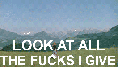 Because again, fuck that noise. I like someone or I don't. People like me or they don't. I'm no longer to going to use my weight as a shield, an excuse, an obstacle, or an apology for why someone shouldn't want to be with me. Don't like my body? Would probably date me if my body were (even just a little bit!) different? Please refer to the above GIF regarding how many fucks I now give.
