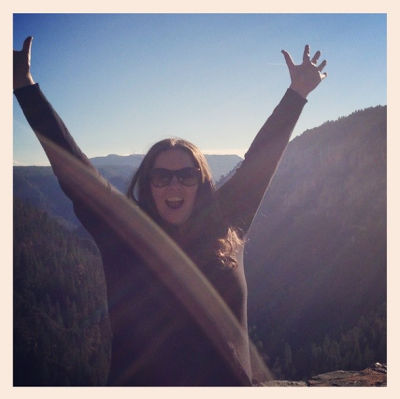 At a scenic overlook, my mom took this photo of me with her iPhone camera and then was immediately freaked out by what showed up on it (even though, by now, she should probably be used to it…she's taken photos of me where orbs with faces in them have showed up. C'mon, Mom.) I told her it was just my Spirit Guide, Bea Arthur, showing up to let me know that she was with me.