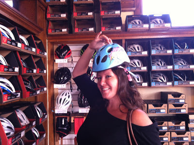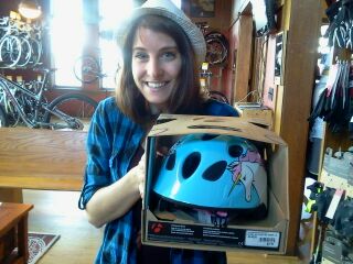 Yesterday my friend and fellow Girl from the Nothwoods chick Meg and I went on a little stroll down and up Main Street, telling local businesses about the Dapper Dozen Calendar and giving them some handy information on how they can be a part of it (HELP US GET THIS THANG PRINTED, YOU GUYS, SO WE CAN HELP FEED SOME KIDS!). When we were done with our Goodwill Tour of Mainstreet, we decided to stop in at Riverbrook Bike & Ski to say hi to our January Calendar Man, Tim, and to do a little research on bikes and helmets (for further reasons for doing this, you can check out this post).And then we saw this helmet.WITH UNICORNS ON IT.It did not fit me.