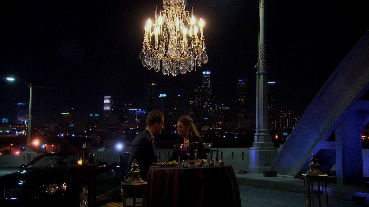 And it's dinner on a bridge in the middle of a slum! So romantic. I like that they recycled one of the most familiar dates from the last season of The Bachelor Pad.
