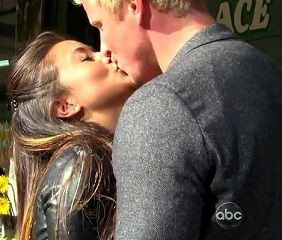 Sean meets Catherine at the fish market in Seattle, WA, for her hometown date. They do stuff like throw fish (sidenote: during this part of the show, there was some HILARIOUS tweeting going on between The Bachelorette: Emily Has A Daughter guys Jef, Sean, and Wolf, making fun of Ryan and all his bragging about being thrown 70 passes and catching 70 passes. And then Ryan got on Twitter asd was like, "HAHAHAHA! You guys are FUNNY! No hard feelings! Let's hang out! I REALLY NEED SOME BRO FRIENDS, YOU GUYS! SO STOP MAKING FUN OF ME ALREADY!" Best part of the show, right there. You can catch stuff like that by following the Bachelor Master List on Twitter) and jig it up to street musicians and make out while walking around. They're so natural, and they have such great chemistry. Sean says that it's impossible to be the cool guy with Catherine because she brings out the weird side of him, and that "it feels like we've been boyfriend and girlfriend for a while and that this is something that we'd be doing on a normal Saturday." Awwww! It is pretty adorable to see Golden Boy act like a total dork around her.