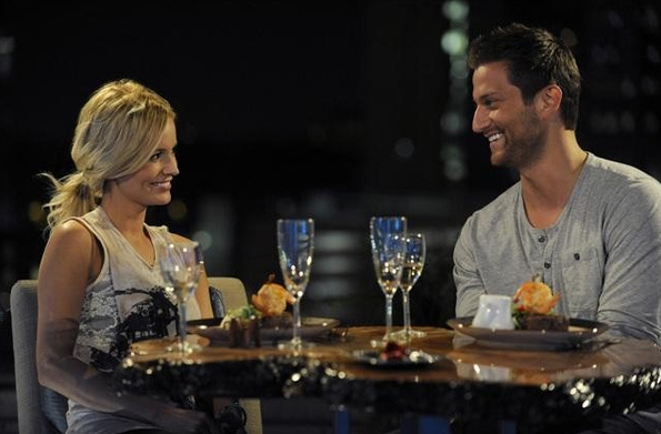 via abc.com And THEN! It's Emily and Alessandro. In the past few eps, I've been kind of rooting for Alessandro because he seemed like a nice guy. A nice guy with really awful hair, but a nice guy. Emily drops the #1 Question - How do you think you would be as a dad? (because she has a child, everybody! Did you know? Emily has a daughter. I hope that you caught that from watching this and other past episodes). Alessandro begins on shaky ground by saying how he doesn't have a lot of experience with kids, and we're like, okay...not really winning the pageant here, but then he says, "But you're gonna teach me, right?" and a sigh of relief is felt around the world as he gets back on solid footing.