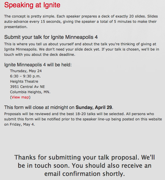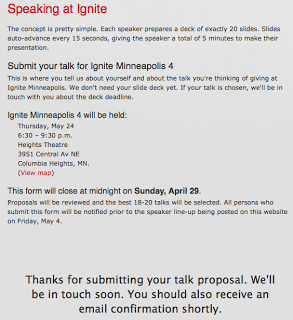 So for a while now I've been thinking about submitting a talk for Ignite MPLS. Why?Because: