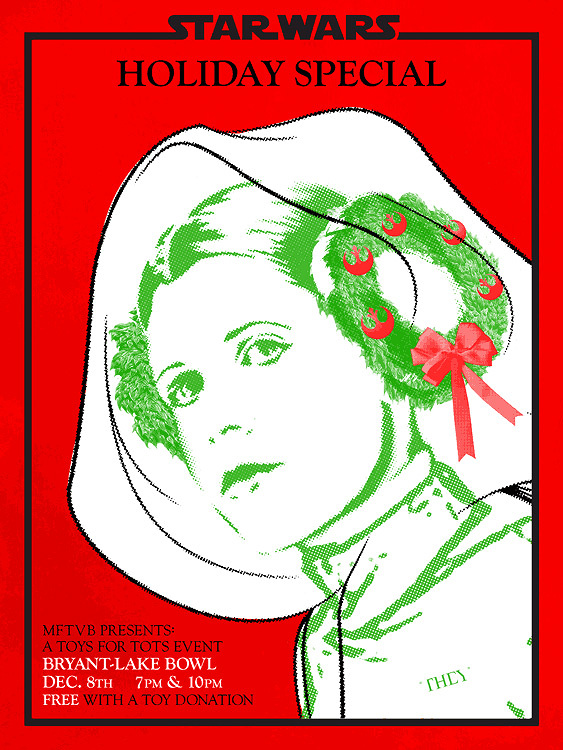 Please join us for the craziest holiday celebration Minneapolis has to offer. Have your photo taken with costumed characters from the Star Wars universe and hear the letter of apology from credited SWHS writer Pat Proft! Enjoy dinner and drinks from Bryant Lake Bowl and watch Jefferson Starship sing into a glowing, hot pink…thing! Pick up the limited edition, Princess Leia themed "Rebel Wreath" poster by Clinton Lugert of THEY design! Bring an unwrapped toy donation and help us create a happy holiday season for the tots.