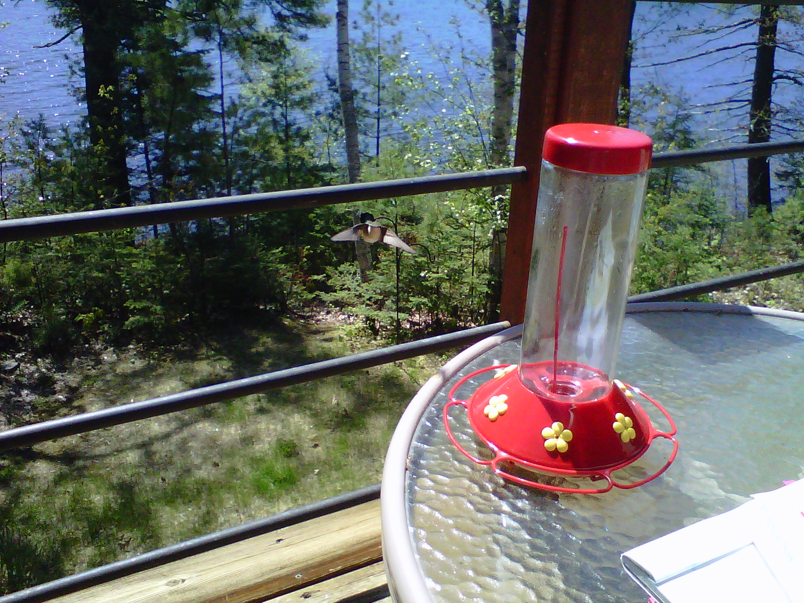 The deck, dock, and lake were also a huge part of the summer. The deck, of course, was where I learned that my dream of being like Snow White had finally come true, and the forest animals had finally seen into my good, kind soul and decided to be friends with me. ("Forest animals" meaning "hummingbirds.")