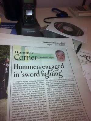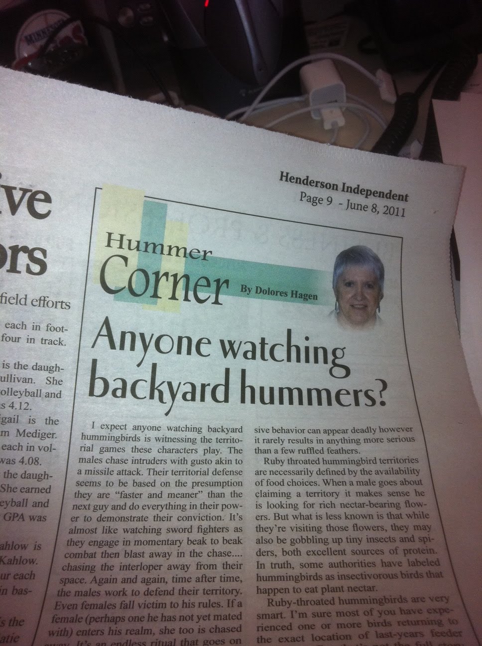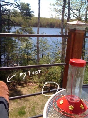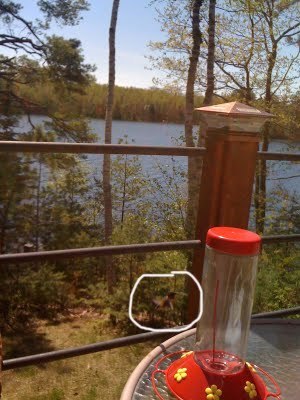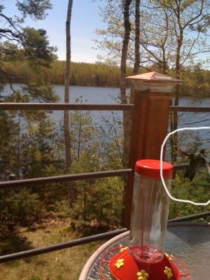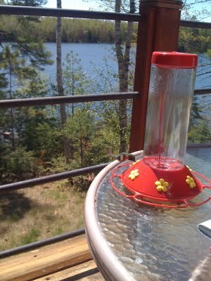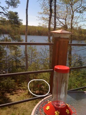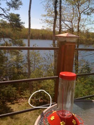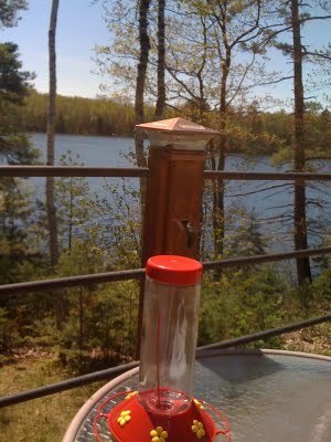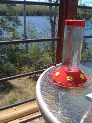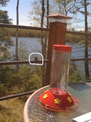 Every morning I take Dutch (the family dog) out to the deck with me for my meditation/study hour. There's a hummingbird feeder on the table that I sit next to, which wasn't a big deal - I love hummingbirds.