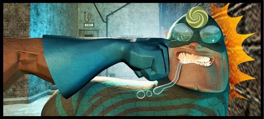The name is Crash Soirée, and here’s Graeme’s W.I.P. character design from yesterday.