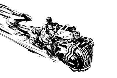 And I’ve received some more fantastic artwork for Who is Killing the Great Capes of Heropa? (my upcoming dual homage to 1930s-40s noir and 1960s comicbooks chiefly produced by Marvel) from Canadian artist Fred Rambaud (see above, with Southern Cross on the motorbike) while Mexican artist Rodolpho Reyes is putting together still more.