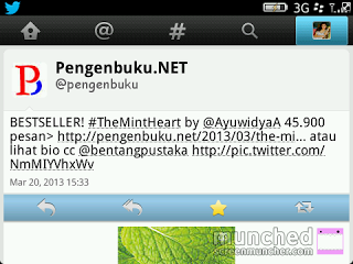 Judul : The Mint HeartPenulis : AyuwidyaPenerbit : Bentang PustakaJumlah halaman : 336 halaman
