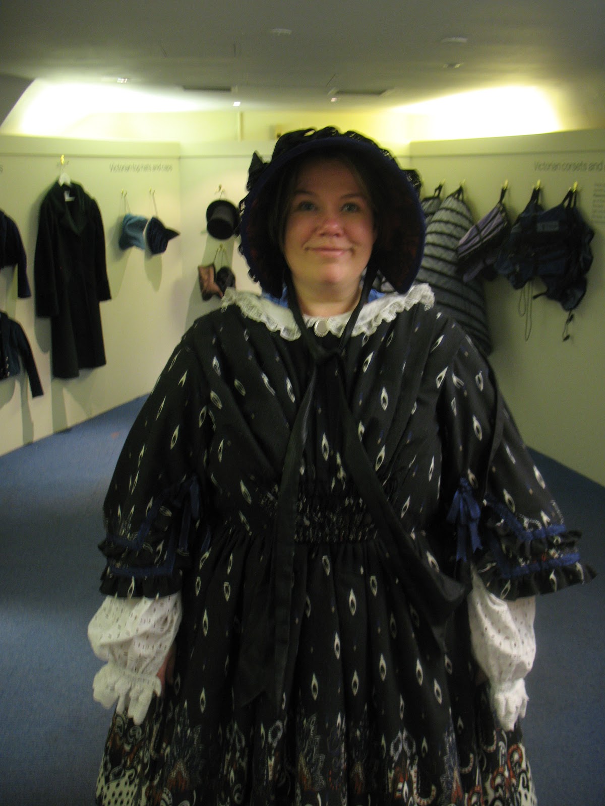 After getting our fill of the Roman baths, we hopped over to the Fashion Museum where we got to see some old and new (mostly ladies') fashions from the 1700s to today. Pictures weren't allowed except in the "dress up room" where I had the chance to slip on a dress from the Victorian period. It weighed a ton! I was more than happy to leave it behind in favor of jeans and sneakers. Guess I was born in the right century!