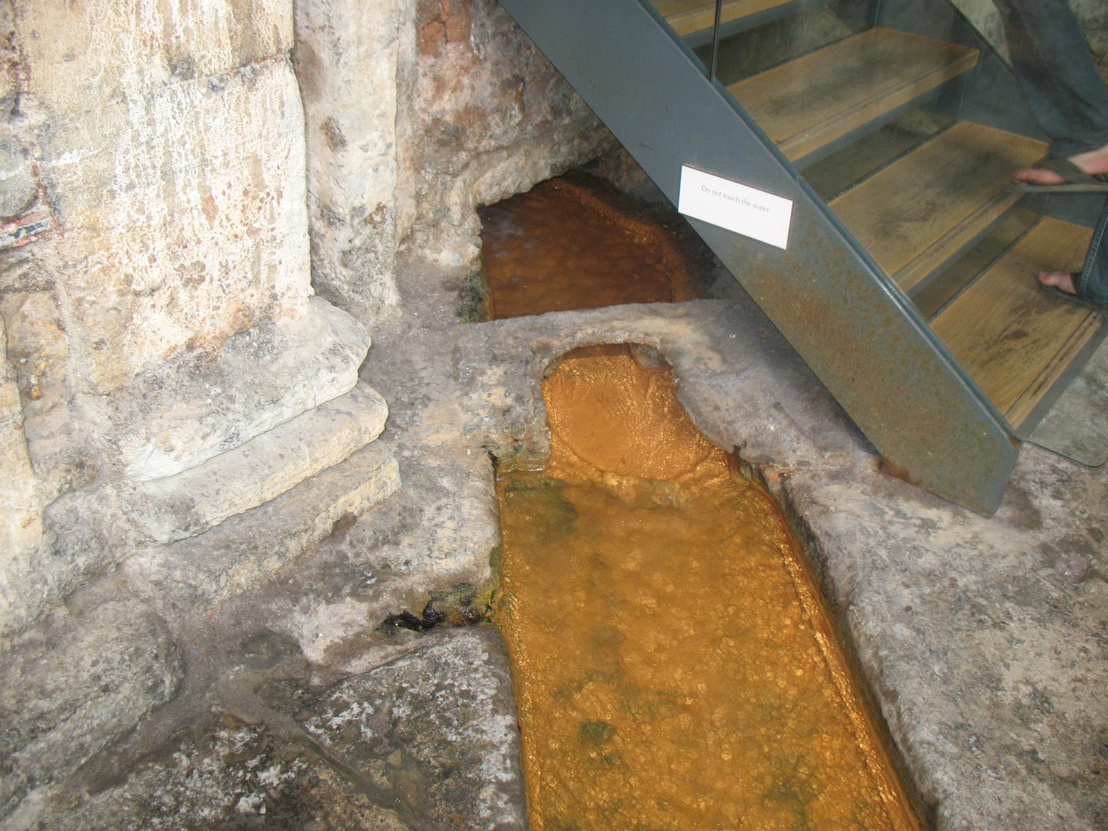 The ancient jacuzzi room was impressive, though it didn't have any water in it (see the ledge where they would sit?). Water came piped in under pressure, which would have created a nice hot tub where patrons with injuries or illnesses would soak and pray.