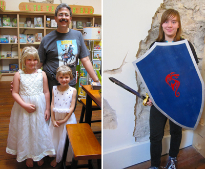 I recently realized that I never posted the photos from the Sir Kaye launch party. Sorry about that! The parties were a lot of fun. We had several families come and bring their children. Some of them came wearing medieval-inspired costumes. We had a shield design contest, and there were puzzles and games, and of course I signed books too. Many thanks to All Things Kids and The Bookspot for hosting the parties.