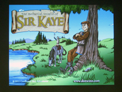 This is the title slide of presentation I gave on medieval life. It’s projected on a screen here at the front of the school auditorium. If you like the picture, there’s a similar (but much brighter) one on my website that you can download as a free desktop wallpaper. I had it put up on my website so that any kids who didn’t win a poster but still wanted one could at least have a desktop wallpaper.