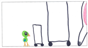 Honorable Mention for Creativity: Mackenzie Murray for “Bunny and Dodo.” This story isn’t exactly a fable or a tall tale, so I couldn’t give it one of the prizes, but I liked the characterization and the way Mackenzie showed the interactions between the characters. So I thought it was very creative and deserved to be mentioned with honor. I think this could be the story of how the bunny got its short tail…or maybe the story of how the dodo became extinct.