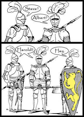 When a knight had a coat of arms painted on his shield, other people could recognize him right away. So knights and others would come up with their own personal coat of arms. They would have different colors or shapes or patterns or animals on their shields. Or maybe they would have different colors of shapes AND patterns AND animals. But whatever they chose, it had to be different from everyone else's shields. Coming soon…Very Basic Heraldry Part Two - Variations, Animals, Colors and Metals.