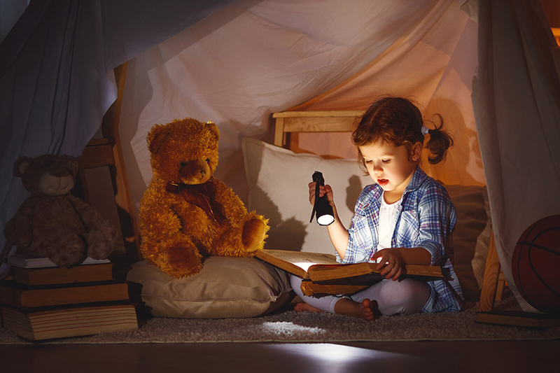 Give kids a microphone to speak into, let them read aloud into the microphone and then play it back so they can hear it. That is very, very helpful for developing their reading skills.Use a flashlight. At night, let kids read in bed, make a tent, read with a flashlight.Flashlights can also be used to trace letters in the air. Kids can visualize a letter, trace it in the air with the flashlight, in the dark, so they can see it. This lets parents notice if kids are able to form letters correctly too, first with gross motor movement, and then with fine motor movement.