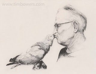 A drawing I did in High School of my grandpa and his parrot, Chico.