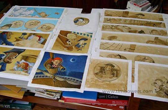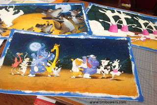 Each book project requires about twenty pieces of art and some of them are very time consuming if there is much detail involved. A book takes several months of work and somewhere in the middle of the process, I start to feel a little overwhelmed. I usually paint in a production line sort of way, mixing a few colors and hitting several paintings with that paint.