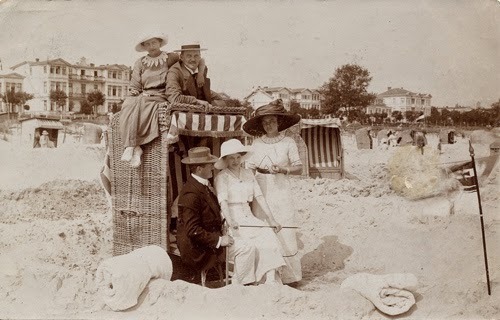 This old photo was a rare find--it's such a perfect representation of a bygone beach-going experience, it almost looks fake. But it is real. I feel sorry for those people for having to wear so much clothes on a warm summer day.