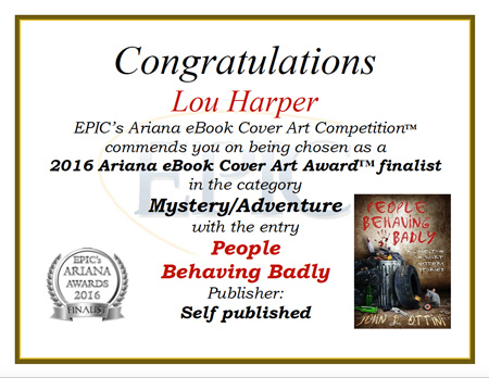 I'm usually terrible at entering competitions—too clueless to know about them, and lazy to do something about the few I know—but for once got my shit together enough to enter a couple of my cover designs to EPIC. One of them was chosen to be a finalist. This is the full print version of the cover: