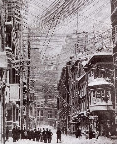 Since the white stuff is about to hit the northeast, I give you and image from the The Great Blizzard of 1888. In for days in March (!!) "The Great White Hurricane" buried parts of New York, New Jersey, Massachusetts, and connecticut under 20-60 inches of snow. The 45 miles an hour winds were icing on the cake.