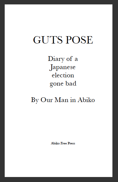 See, tonight I had a second pop at my own cherry, if you like. A couple of days after the Japanese election in December I published Guts Pose as an ebook (like an ewok, but less profitable). But it's taken me until now to fix the typos, scan in the pencil sketches and turn the damn thing into a real ink and paper book. But I did it. And you can buy it from here . Or learn more about it from here . Or just carry on regardless. And whatever you do, wherever you click, or not, it's all good. Really.