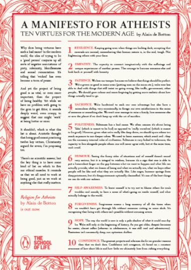 Yes, yes, this appears to be little more than a glorified advert for Alain de Botton's new book (and hark, there was me going on about corporations taking over the world and me being sniffy about advertising for free on this blog, yadda yadda yadda), but I thought it was rather good, and definitely worth reading or even possibly the effort of laminating and sticking on the fridge or back of the toilet door.