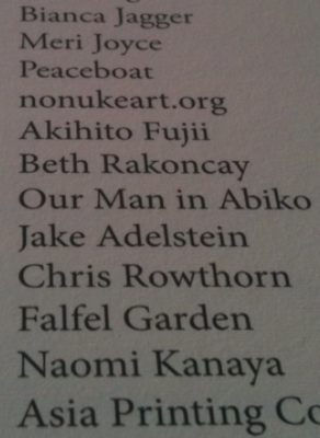 The first shock was that his name is there in the "Special Thanks" category, below Bianca Jagger, but above Jake Adelstein. Other than retweeting the occasional pronouncement from the Fresh Currents folks and wishing them the best in their publishing endeavours, Our Man is wholly undeserving of special thanks. But now he felt obliged to read on.