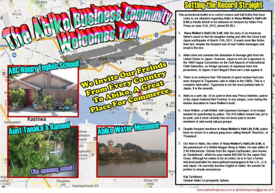 So, forgive Our Man his chuffedness to see this. Japan Today has run the Abiko Free Press story about Hana Walker's book. THE FULL STORY IS HERE. Lest you suspect Our Man of merely seeing $$$ before his eyes when he thinks of you, dear reader, know this: he is in no way, shape or form able to even contemplate quitting his cover job to concentrate on chronicling Hana's continuing adventures.