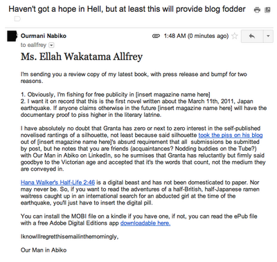 So this is it. Our Man has sent off the completed ebook file of Hana Walker's Half-Life 2:46 to Amazon and it's just a matter of hours, or probably minutes, until the book hits the virtual shelves in America and Europe. Though thanks to the internet you can buy a copy wherever you are from the Abiko Free Press bookstore RIGHT HERE.