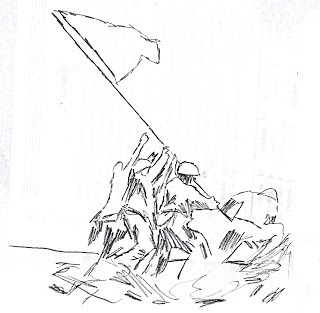 Our Man got to thinking about self-publishing and came to the probably erroneous conclusion that despite all the talk of revolution in the publishing world, nobody had written a declaration, a rallying cry for self-publishers (Give me ebooks or give me death? - Ed.). Until now. This (CLICK HERE) is Our Man's attempt.Yes, yes, the scribble by Our Man of the iconic pic isn't from the War of Independence (which one? - Ed.) but it was on Japanese soil, and er, it sort of is about freedom? Sacrifice? Working together on an ebook? Oh look over there, gay weddings at Tokyo Disneyland or something.