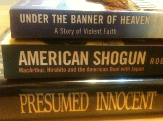 They are of course Under the Banner of Heaven by Jon Krakauer, American Shogun by Robert Harvey and Presumed Innocent by Scott Turow.